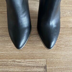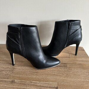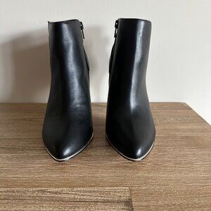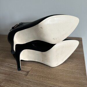High Heel Ankle Booties Womens Size 8 Faux Leather Gold Buckle Pointy Toe