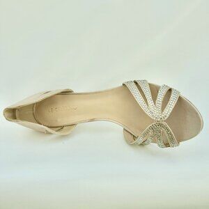 High Heel Dress Shoes Satin Rhinestones Rose Gold Never Worn Wedding Prom Party