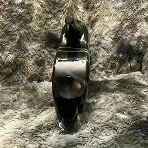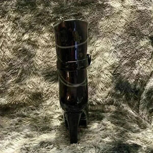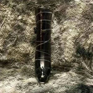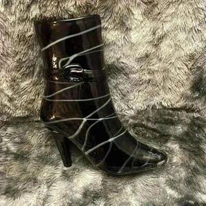 High Heel Glass Boot Vase 12”Stiletto Art Sculpture Black with white stripes