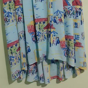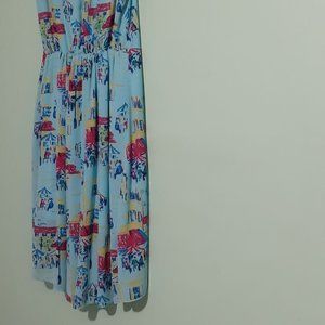 High Low hem Simple Sleeveless Turquoise dress with drinking lovers print sz 4?