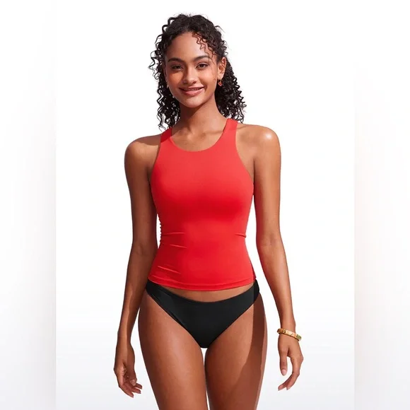 Women's tankini, the fabric is smooth, breathable and quick-dry, bringing you a comfortable sports experience. Tankini top with high neck and racerback design modest while adds athletic style. Perfectly for swimming, beach, pool parties and water sports.