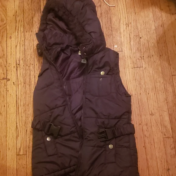 ladies small dark plum purple with faux fur around Hood