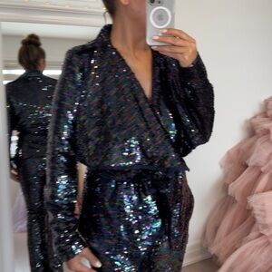 High Quality Black Sequin Party Suit - Glam Night Out - Size M