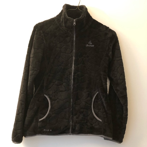 Zip up sporty fleece jacket with functional large pockets. Warm blazer, covers neck and lower back, so great for chilly weather. Super practical. Black and soft. Excellent condition.