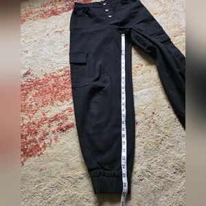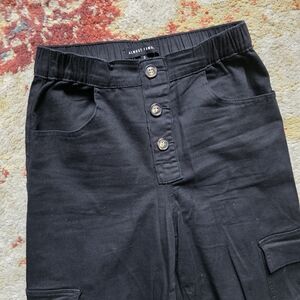 Stylish and versatile black cargo pants for women. Perfect for casual outings or everyday wear.