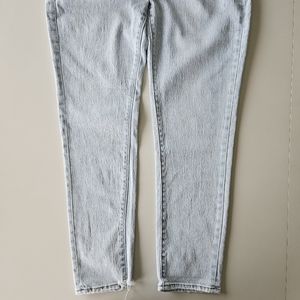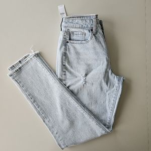 Curvy OG straight high rise light wash denim with minor distressing
