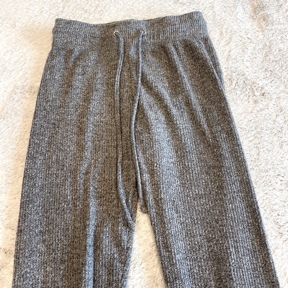 High Rise Grey Ribbed Knit Leggings