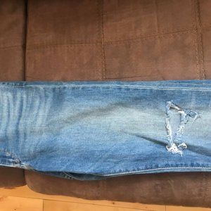 Bought new and worn once or twice. The left knee hole is part of its design and adds a casual touch.