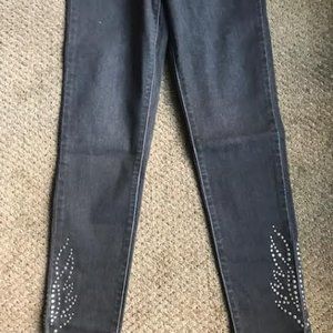 Cute skinny black jeans with rivet detailing around ankle. Levis 721 style.