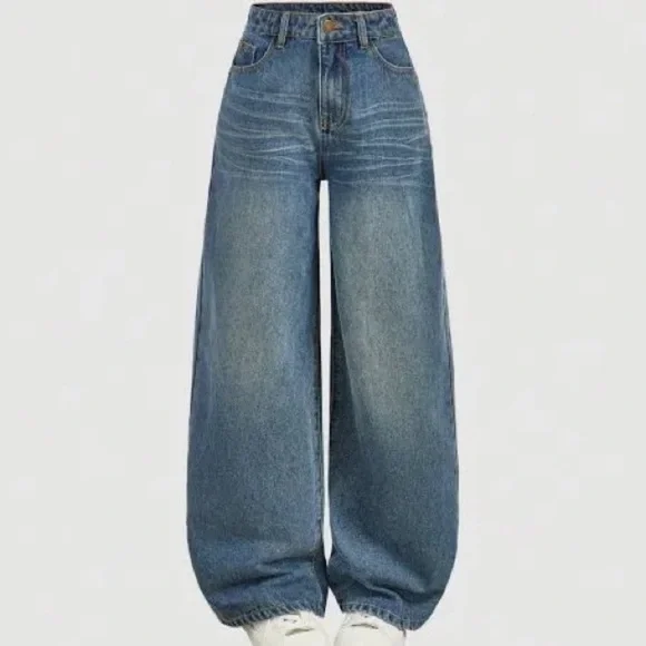 High Rise Wide Leg Distressed Jeans