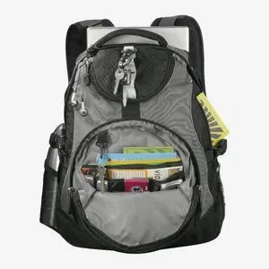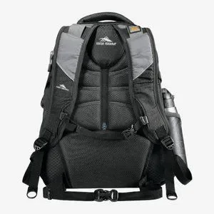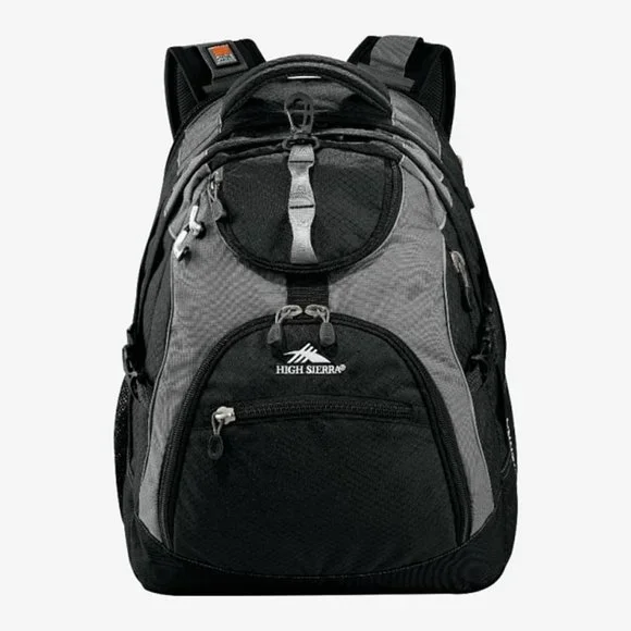 Holds most 17 inch computers (max: 15.5"H x 10.75"W x 1.8"D). It also features a built-in padded laptop sleeve with a zippered access pocket on the back and a front compartment with a convenient side access zipper. Deluxe multi-pocket organizer. Easy-access deluxe media pocket with headphone port. Side mesh beverage compartment. Padded back panel. S-shaped Vapel™ mesh Airflow™ padded shoulder straps with suspension system, adjustable sternum strap. Adjustable side compression straps. Vapel™ mesh padded grab handle Signature High Sierra® hardware.