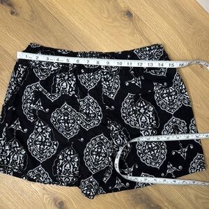 These high waist shorts showcase a striking black and white pattern, perfect for adding a touch of elegance to your summer wardrobe. Crafted from lightweight fabric, they offer both style and comfort for casual outings. The symmetrical design enhances their sophisticated appeal. Tons of stretch!