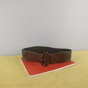 High Waist Elastic Leather belt Made in Italy, Stretch Leather belt GREEN/BROWN