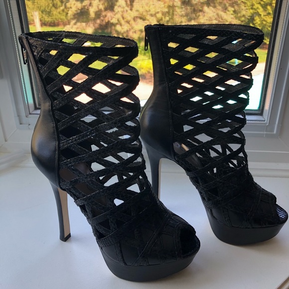 Like new . Lightly used Bebe heels Gladiator style with peep toe.