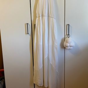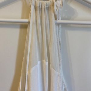 Sheer detail at the back by the neck and sheer detail at the bottom of the dress in the front and back