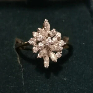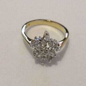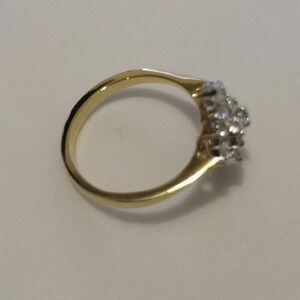 approximately size 7.5 approximately gold tone / gold plated / costume ring not solid gold CZ stones