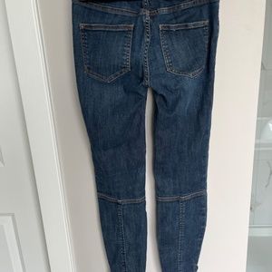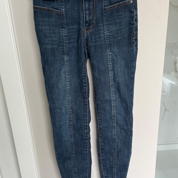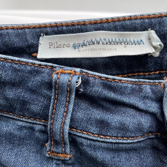 A little western with a motto theme stitching. Darker wash with golden brown stitching. Super comfortable with some stretch and unique style.