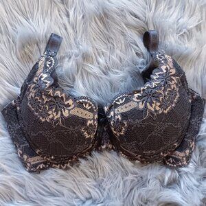 High support vintage-inspired brown and gold lace bra