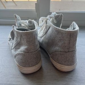 Grey fabric high top sneakers, laces and zipper. Size 7 US. Only worn a few times.