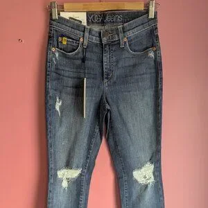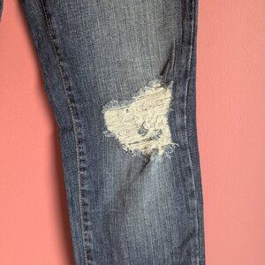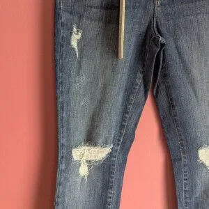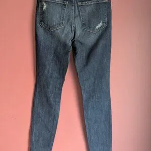 Bought two pairs but I’m still rocking the first one, so letting these go. Skinny leg fit with ripped knees + small distressed details throughout. Mid-rise (sits just under the belly button). A classic pair with the perfect edge!