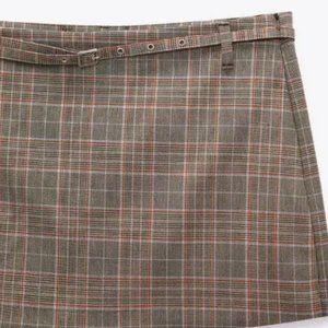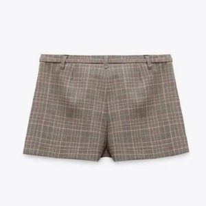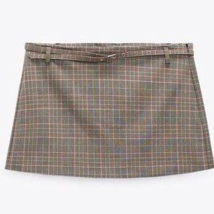 High waisted skort, Taupe borwn plaid, Zara, size S