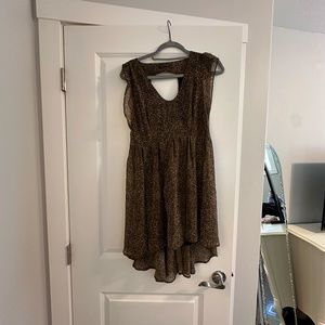 High-Low Animal Print Summer Dress, cheetah print or leopard perhaps! Open to the imagination lol Slight high-low to the dress. Open back cut out, zips up the back. I wore this dress so much travelling. It was the perfect dress for warm summer days and any activity!