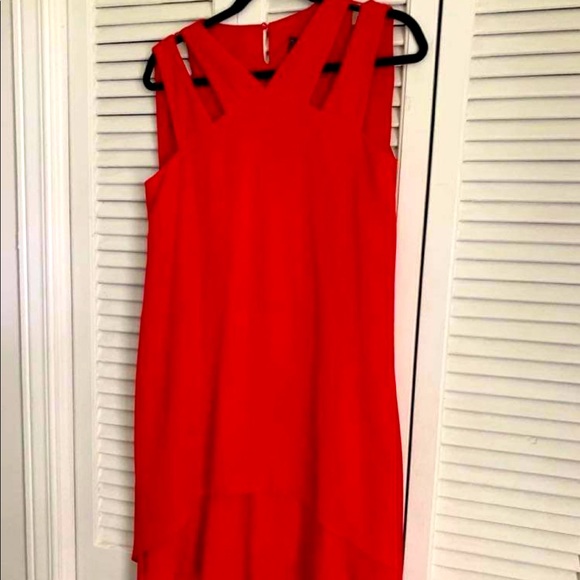New without tags, never worn. Fuchsia high-low cocktail dress with detailed neckline.