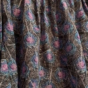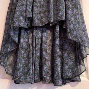Brand new high-low skirt with elasticized waist and peacock patterning. The front layer sits half-way down the thigh. It is size XL (16-18).