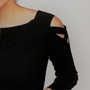 High-Quality Cut-Out Shoulder Semi-Cropped Ribbed Black Sweater - Size XS