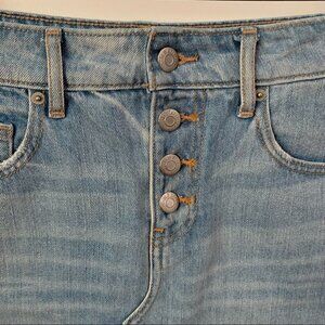 High-Waisted Button-Fly Raw-Hem Jean Skirt, Sz 4