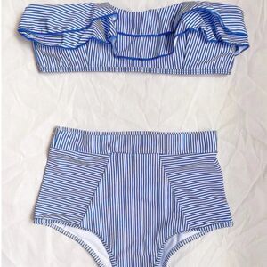 High quality! Double ruffled flounce crop top, adjustable padded push up bras, and pulls on style, ultra chic and adorable.