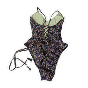 Highcut Lace Up One Piece (Tassel Tie Ends) Navy JellyFish "BirdFeet" Print NWOT
