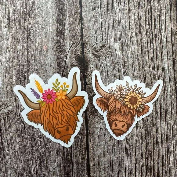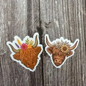 Add charm to your space with these delightful floral Highland cow stickers. Featuring brown and tan hues, these stickers are perfect for any home decor project.
