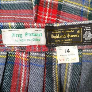 Highland Queen Grey Stewart Wool Kilt Womens Size 14 Dark Academia Vintage
