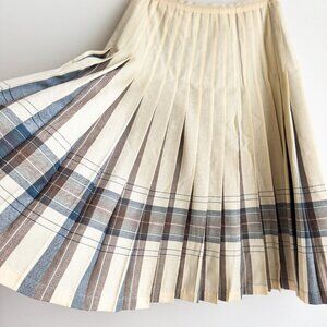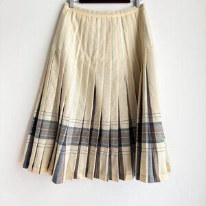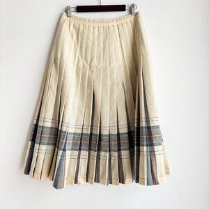 Highland Queen Wool Fully Reversible Ivory Brown Blue Pleated Midi Skirt M