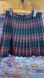 A classic tartan pleated skirt in this mini style. It is made of pure virgin wool. It has a button and zipper at the side. A bit of fraying on one side with the tread. No holes or tears. See pic.