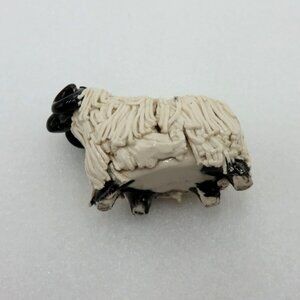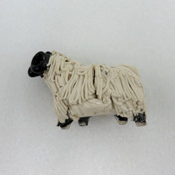 Highland Ram Sheep Spaghetti Pottery Black and Cream Ceramic Figurine Small VTG
