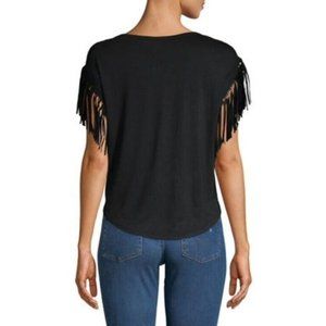 Highline Collective Fringe Sleeves NEW YORK Print Tee Shirt Black ( M )