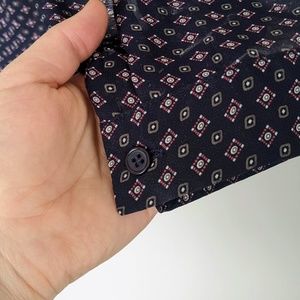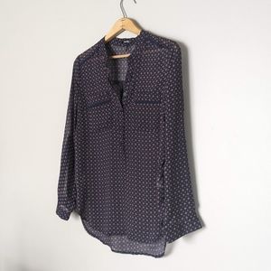 High-low sheer navy blouse with geometric pattern size small - Roly Poly