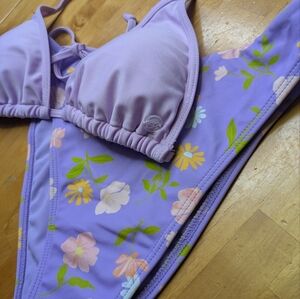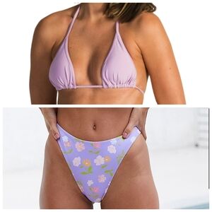 Highrise Floral PacSun Bottoms/Triangle Top By Skinny Dip Bikini Set Purple NWOT
