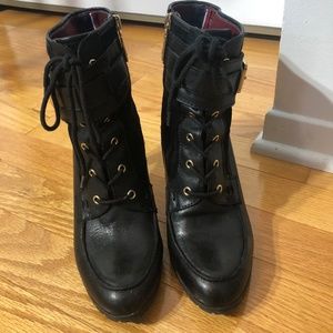 Leather hight heels chic boots Leather lining. Ziper on the inside. 3.5 inch heel. Excellent condition.