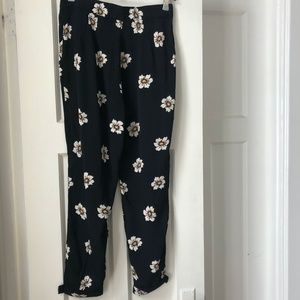 Super cute black high waisted flowy pants with sunflowers on them. Tapered at bottom with button closures. Size M from Zara.