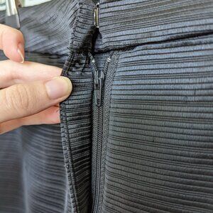 There are a few noted small snags in the satiny fabric, but they're not very noticeable given the horizontal stripe detail. See photos for materials and measurements.
