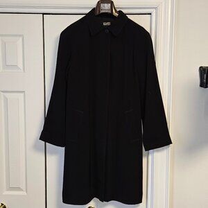 This versatile coat is a wardrobe staple that exudes sophistication and practicality. Perfect for layering over dresses, workwear, or casual outfits, it offers both style and functionality. Fantastic twill fabric with a sturdy feel and beautiful drape.