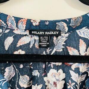 Hilary Radley Floral Navy Blue Long Sleeve Baby Doll Tunic Shirt Size XL