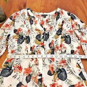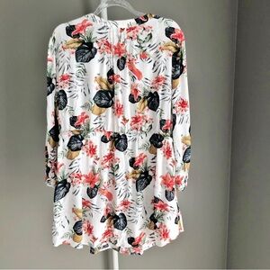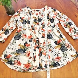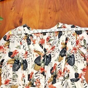 Hilary Radley Floral Tropical Pattern Boho Festival Button Down Shirt Blouse.