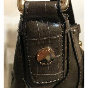 Hilary Radley Purse Brown Leather Crossbody Croc Embossed & Leopard Lining 10 x