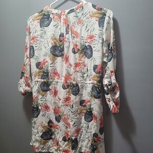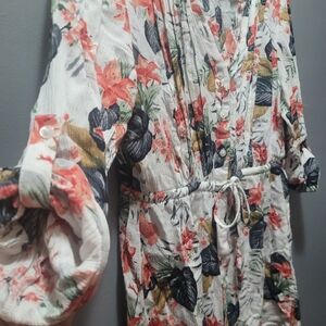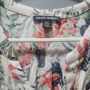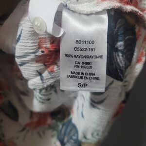 Hilary Radley White Floral Print V Neck Button Up Shirt S
