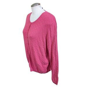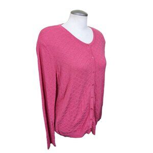 Hilary Radley Women Plus XXL Button Cardigan Sweater Coral Diagonal Check Cotton