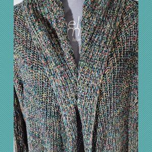 Hilary Radley for Katherine Barclay Multicolor Ribbed Knit Open Front Cardigan